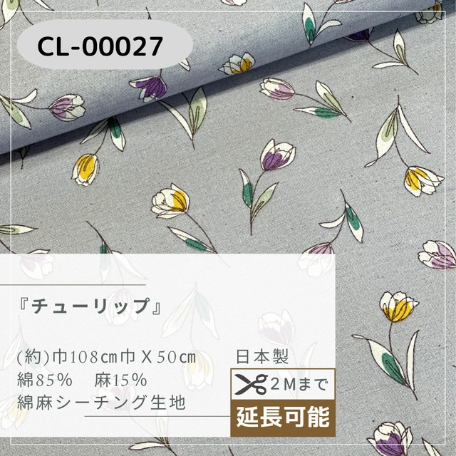 チューリップ柄 綿麻シーチング生地 CL00027