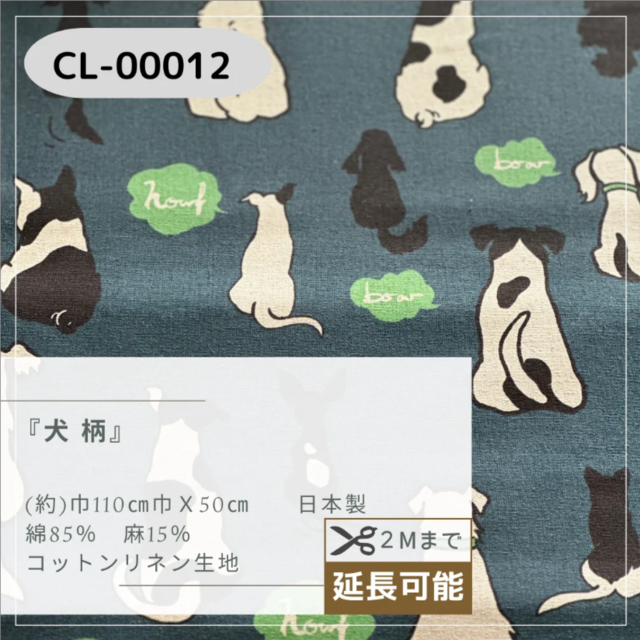 【商品名】『 犬柄 』 綿麻キャンバス生地 50cmカットクロス 【サイズ】(約)巾110cm×50cm 【素材】綿85% 麻15% 綿と麻の混紡素材は、通気性が良くて丈夫なので、バッグやエプロン、クッションカバーなど幅広い用途におすすめです。 ✅1枚分のお値段となっております。 ご希望の枚数を選択し、ご購入にお進みください。 ◆50cm単位ごとで販売中、2Mまで延長可 ・表示価格は50㎝単位です。 ・1Mの場合、2枚購入 ・2Mの場合、4枚購入 繋げてご使用されたい場合は、ご購入前に[✎ショップに質問する]からお知らせください。 ※商品は折りたたんでの配送になります。あらかじめご了承ください。 ※商品の色味はモニターの種類によって多少異なる場合がございます。 ※当社の他オンラインショップと在庫を共有しており、注文が確定しても完売・欠品の場合があります。予めご了承下さい。 【 配送方法 】 ◆クリックポスト (※商品によっては、その他での発送となる場合がございます。) ◆金曜の午後から、土曜・日曜の購入は発送が月曜日になります。ご了承ください。