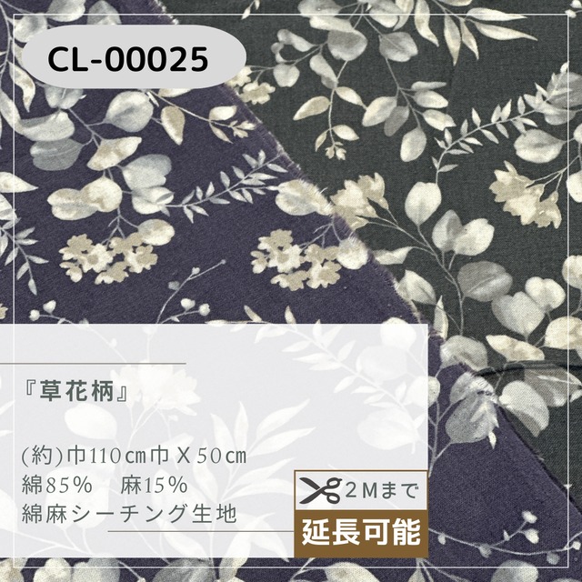 草花柄 綿麻シーチング生地 CL00025