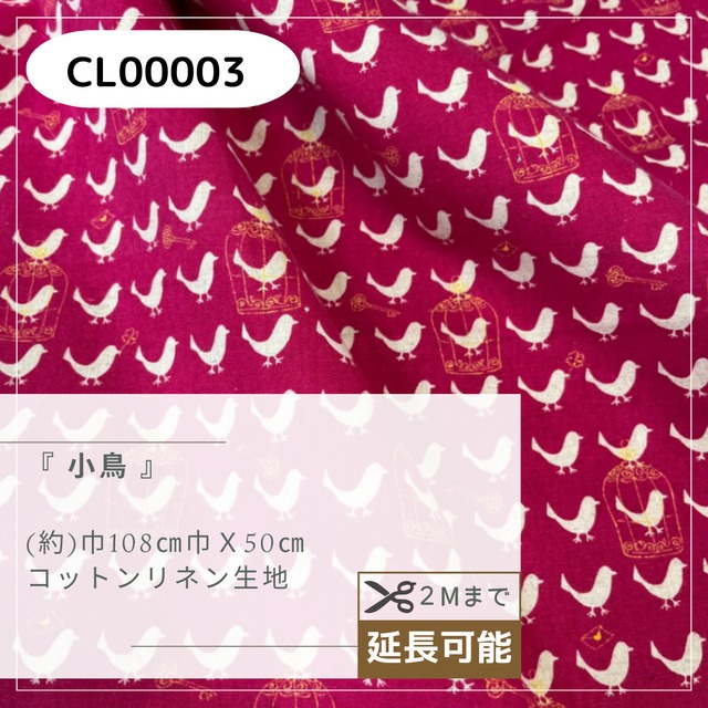 『 小鳥 』 綿麻生地 50cmカットクロス CL-00003
