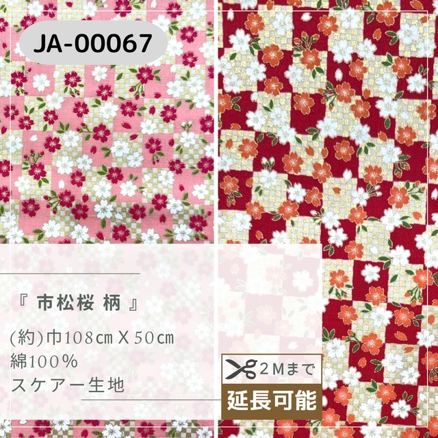市松桜柄 スケアー生地 50㎝カットクロス JA-00067
