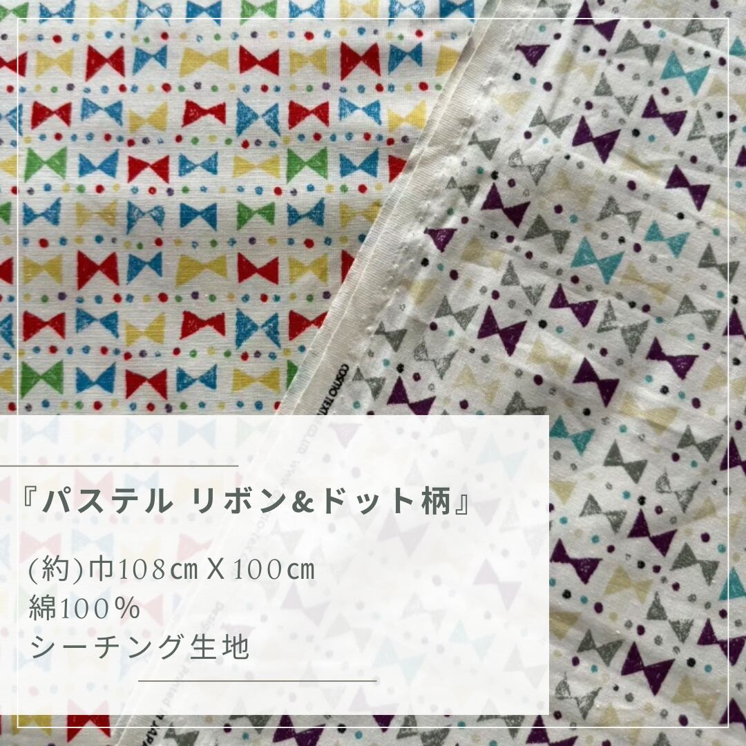 【商品名】『 パステル リボン&ドット柄 』 シーチング生地 100cmカットクロス