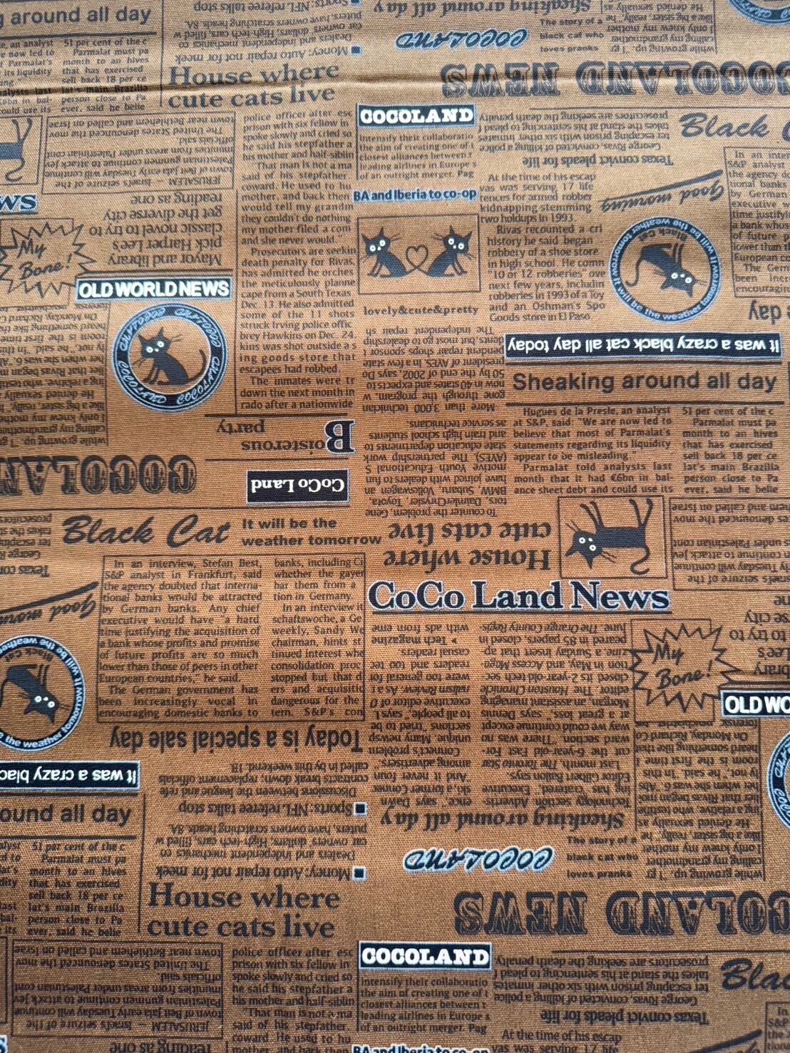 【商品名】CoCoLand『 英字新聞柄』 オックス生地 50cmカットクロス