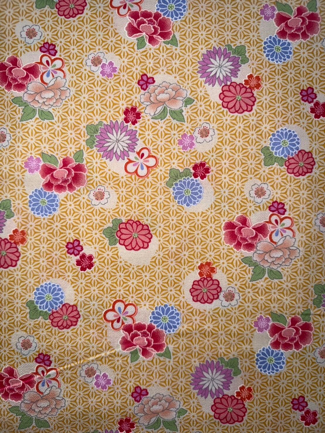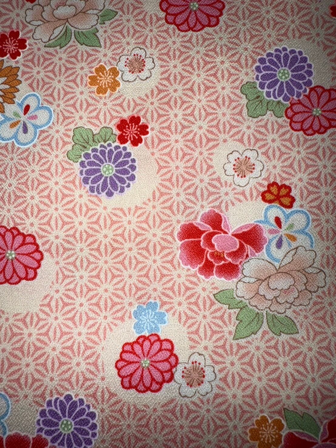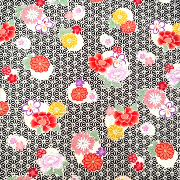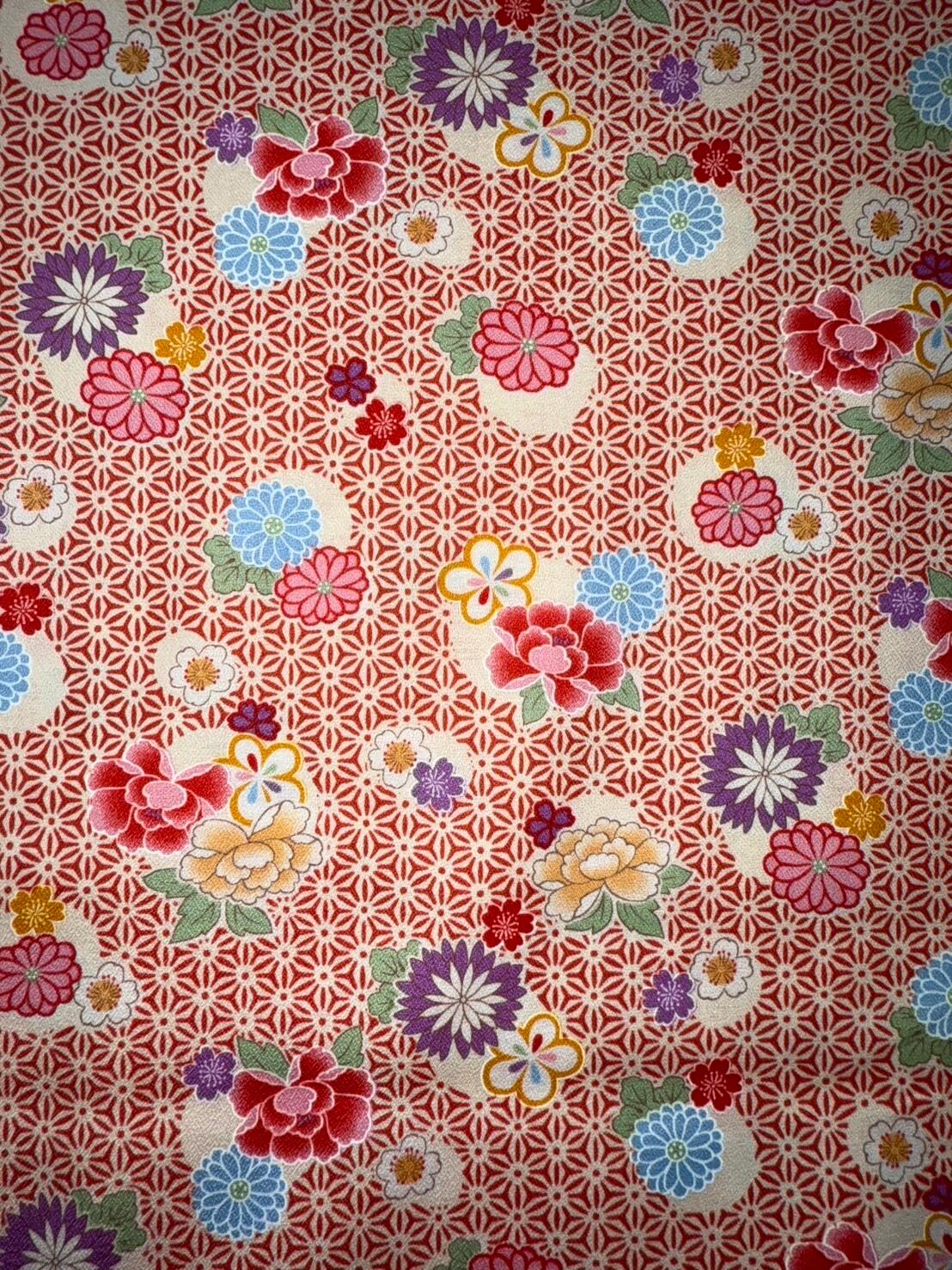 【商品名】アムンゼン『 麻の葉に花文様 』 スケアー生地 50cmカットクロス