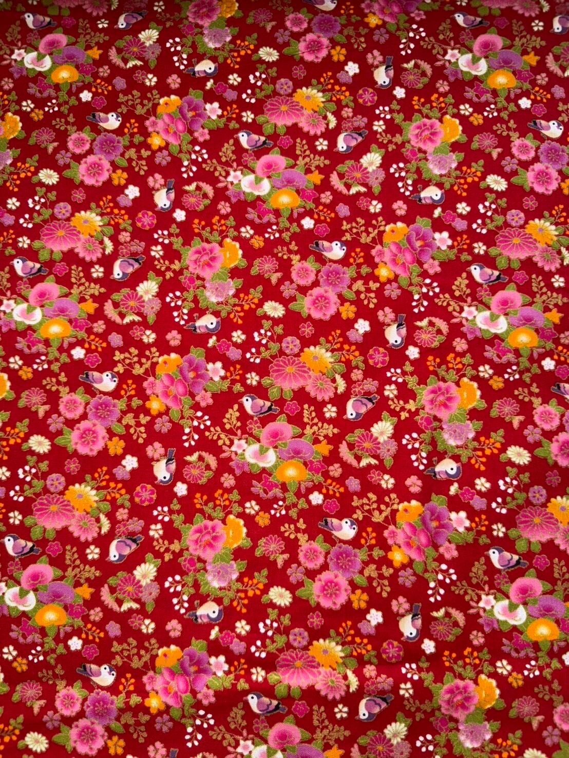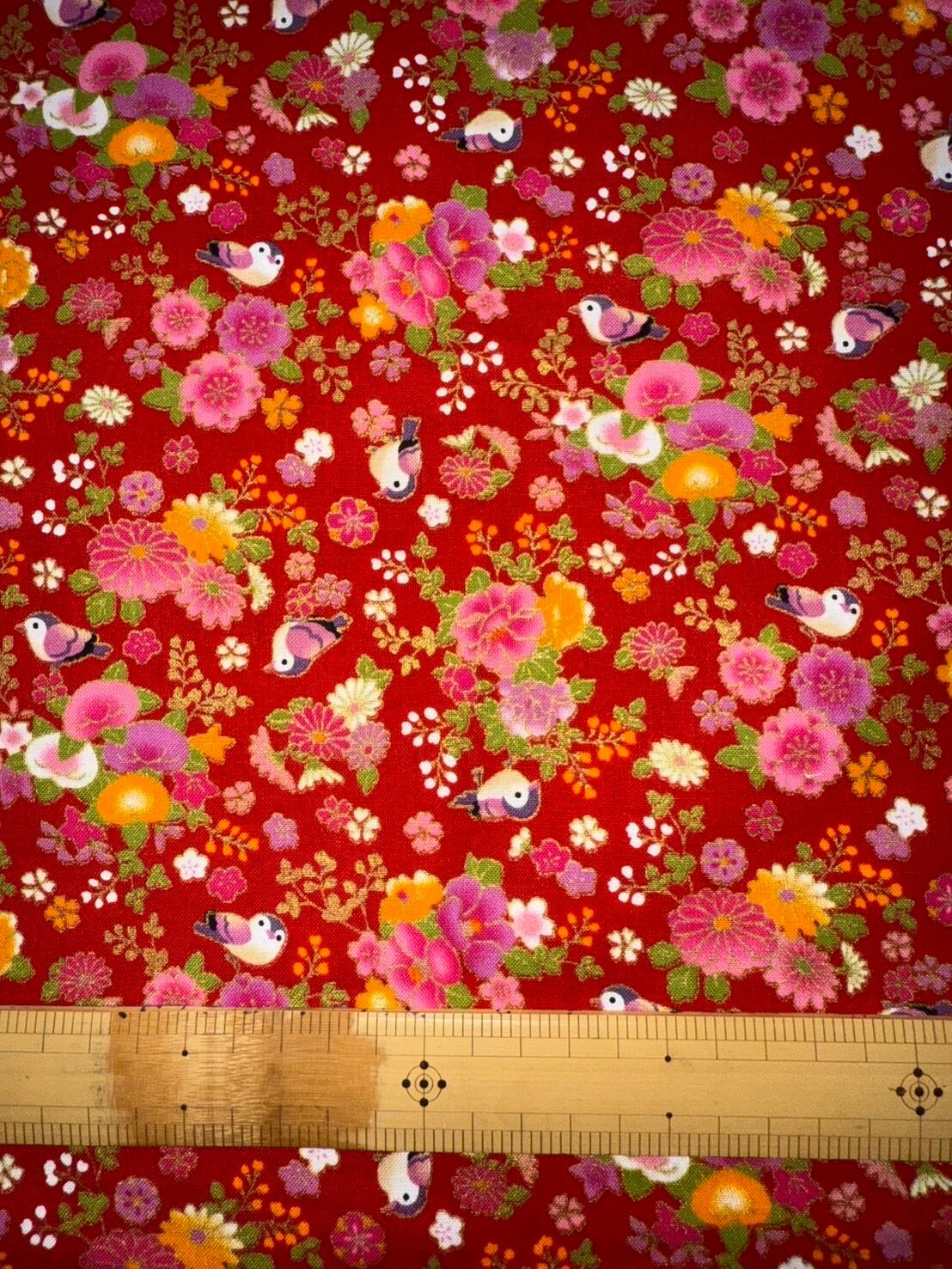 【商品名】『 小鳥と花和柄 』 スケアー生地 50cmカットクロス