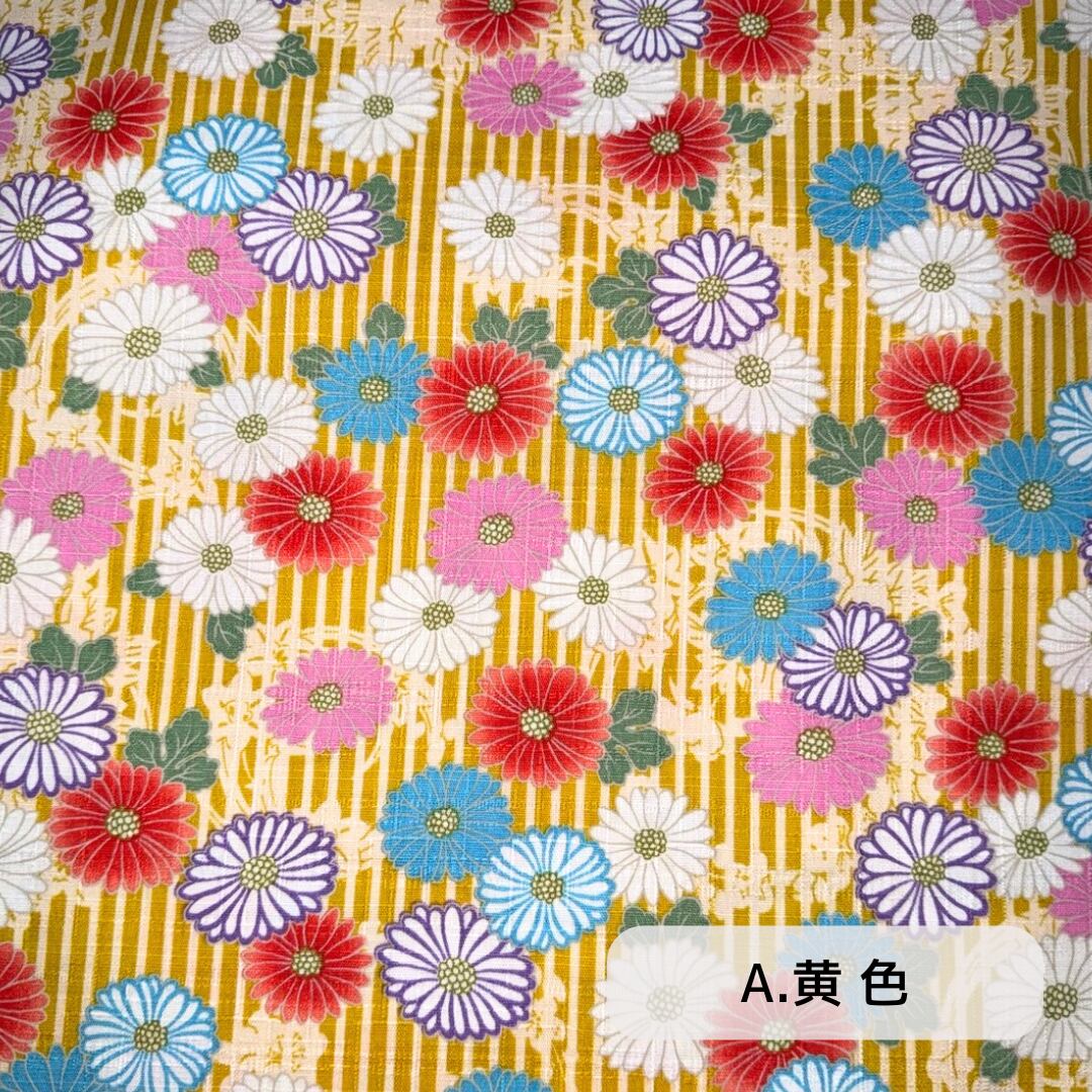 【商品名】『 菊と縞模様 』 和柄ドビー織生地 50cmカットクロス