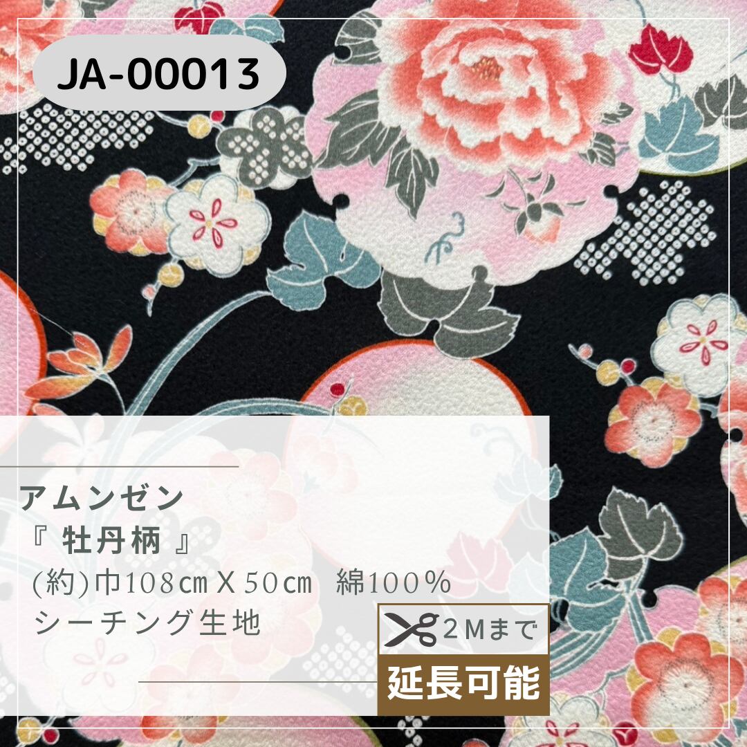 【商品名】アムンゼン『 牡丹柄 』 シーチング生地 50cmカットクロス エンボス加工