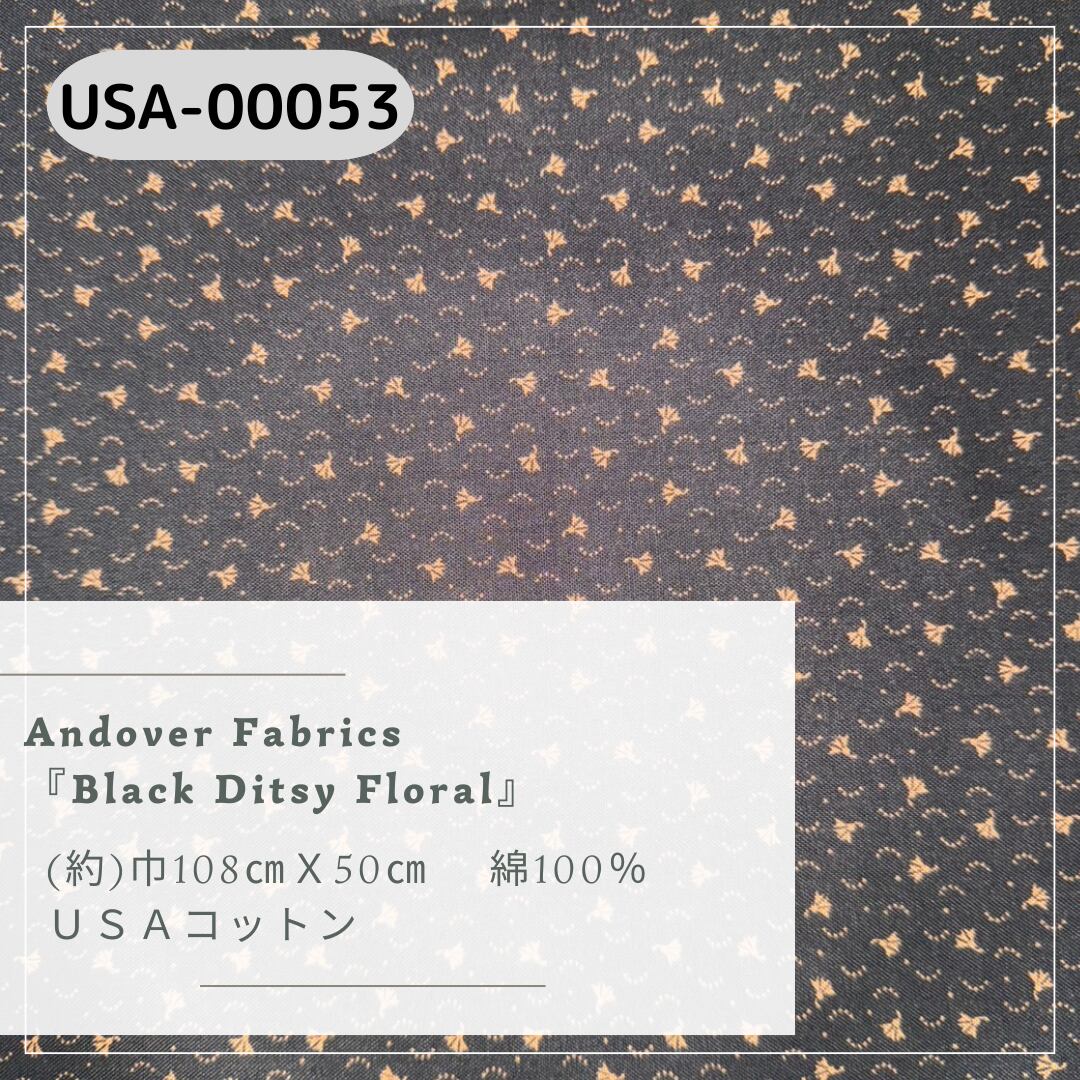 【商品名】Andover Fabrics 『Black Ditsy Floral』50cmカットクロス
