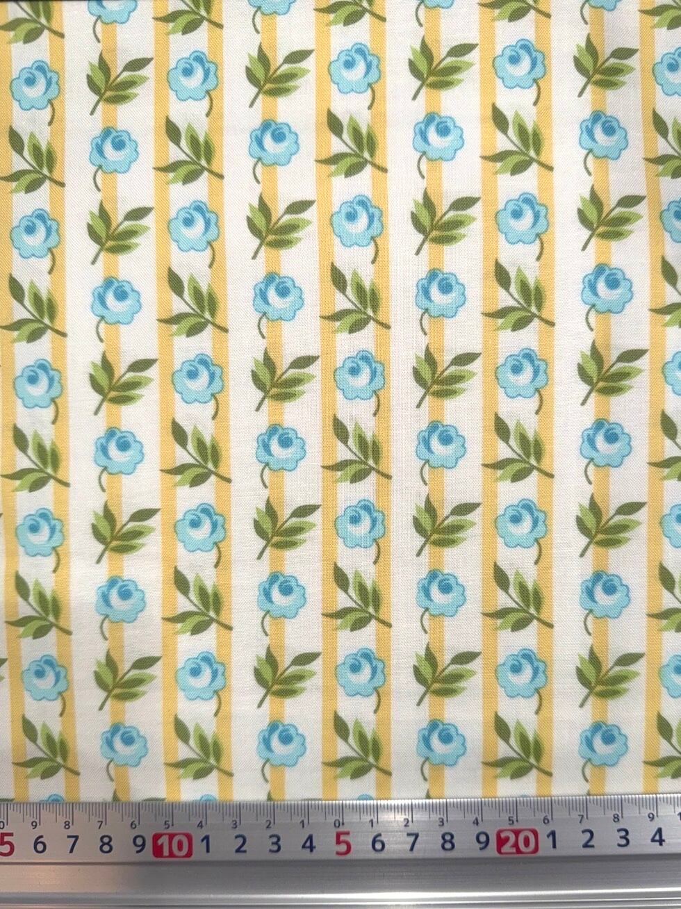 【商品名】Andover Fabrics『Roseberry Cottage Floral Stripe Teal』50cmカットクロス