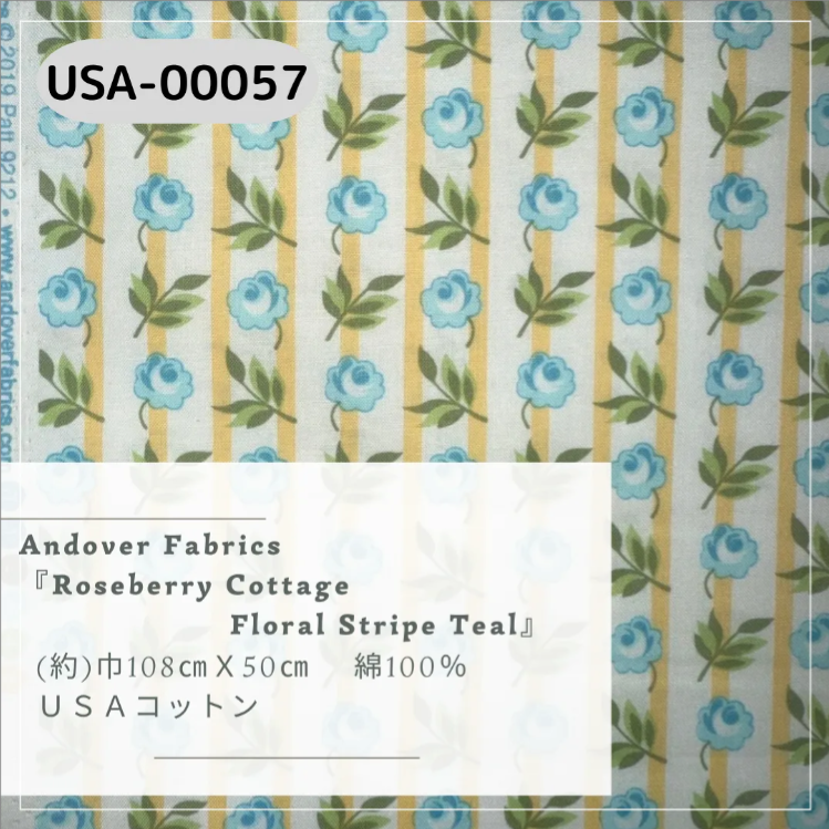 Andover Fabrics/「Roseberry Cottage Floral Stripe Teal」 USAコットン USA-00057