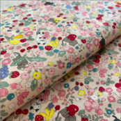 【商品名】コットンこばやし 『 フルーツフラワー猫』 ブロード生地 50cmカットクロス