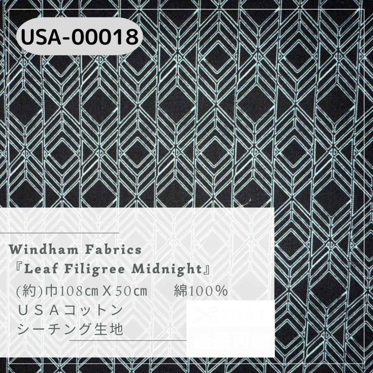 【商品名】Windham Fabrics『Leaf Filigree Midnight』 シーチング生地 50cmカットクロス