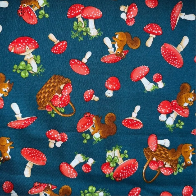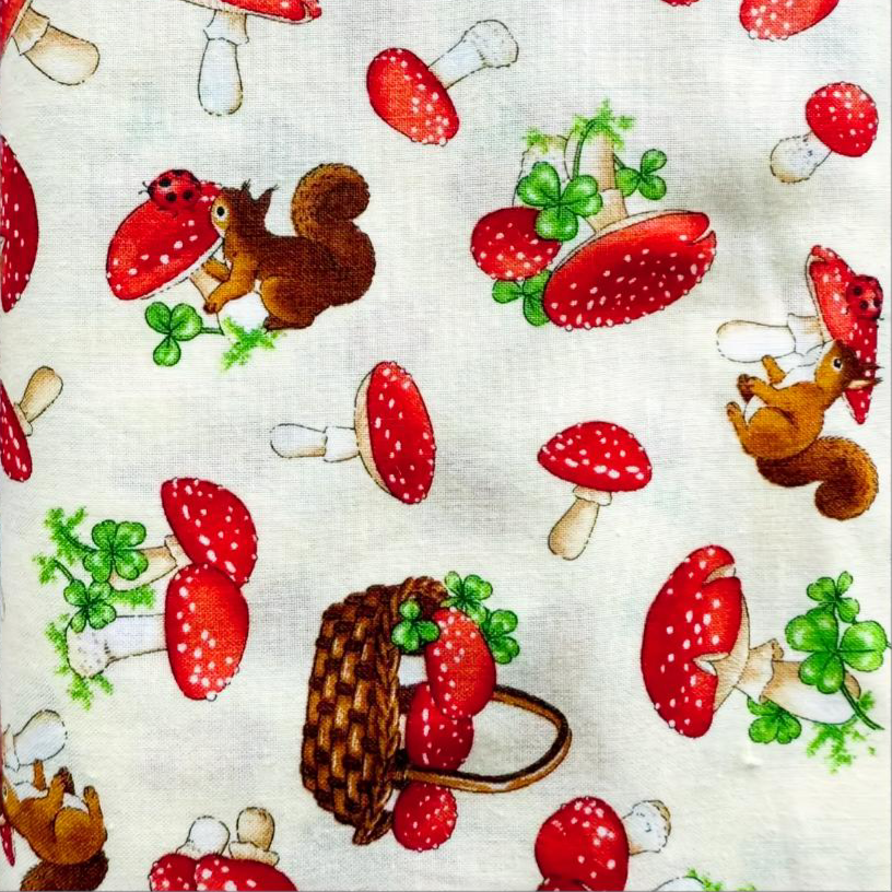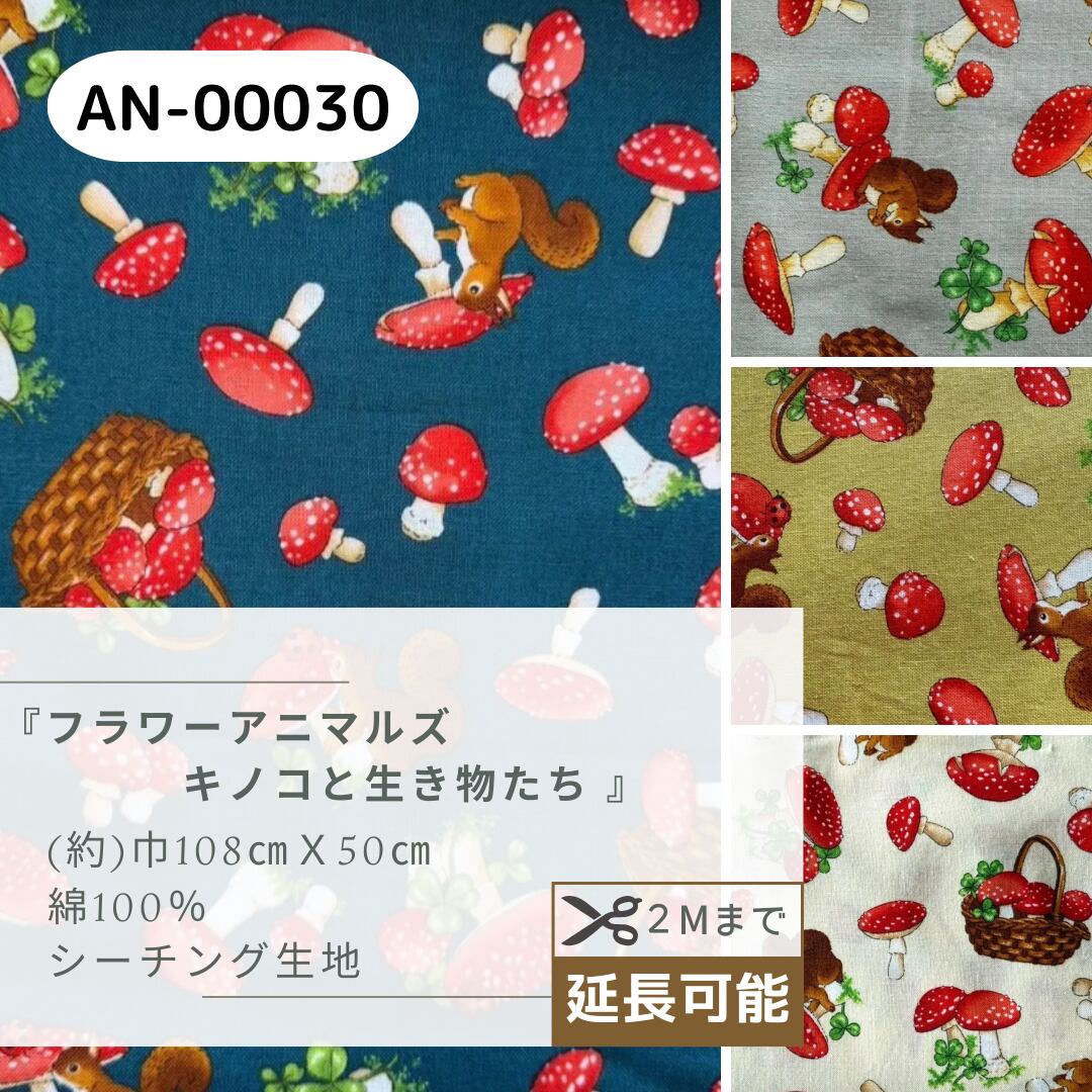 【商品名】『 フラワーアニマルズ キノコと生き物たち 』 シーチング生地 50cmカットクロス