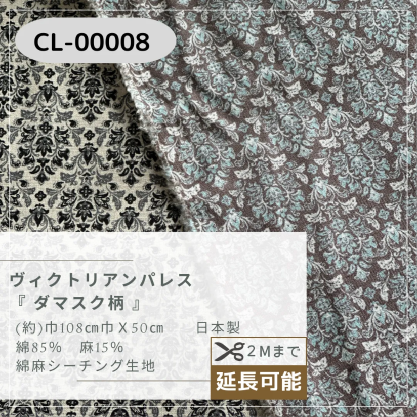 【商品名】ヴィクトリアンパレス『 ダマスク柄』 綿麻シーチング生地 50cmカットクロス