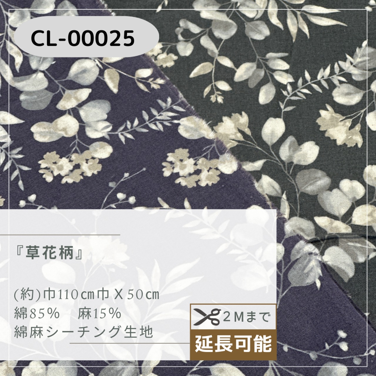 【商品名】 『 草花柄 』 綿麻シーチング/エンゼルソフト加工 50cmカットクロス