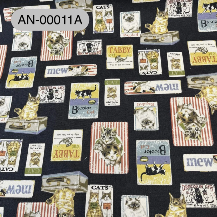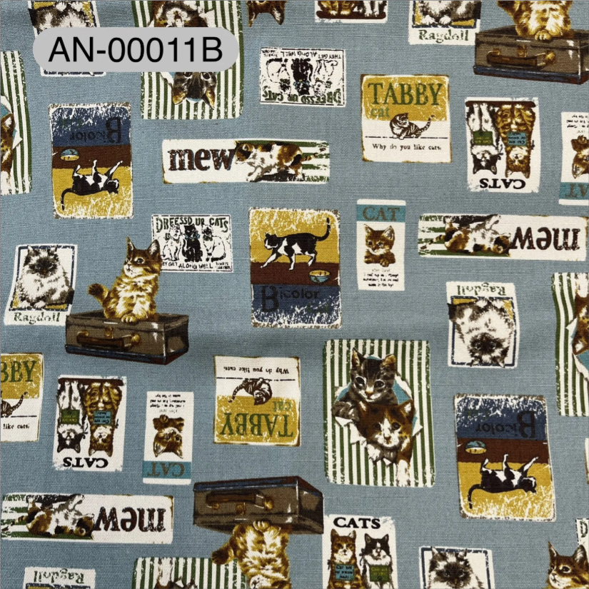 【商品名】『 ビンテージ調 ねこシール柄 』 オックス生地