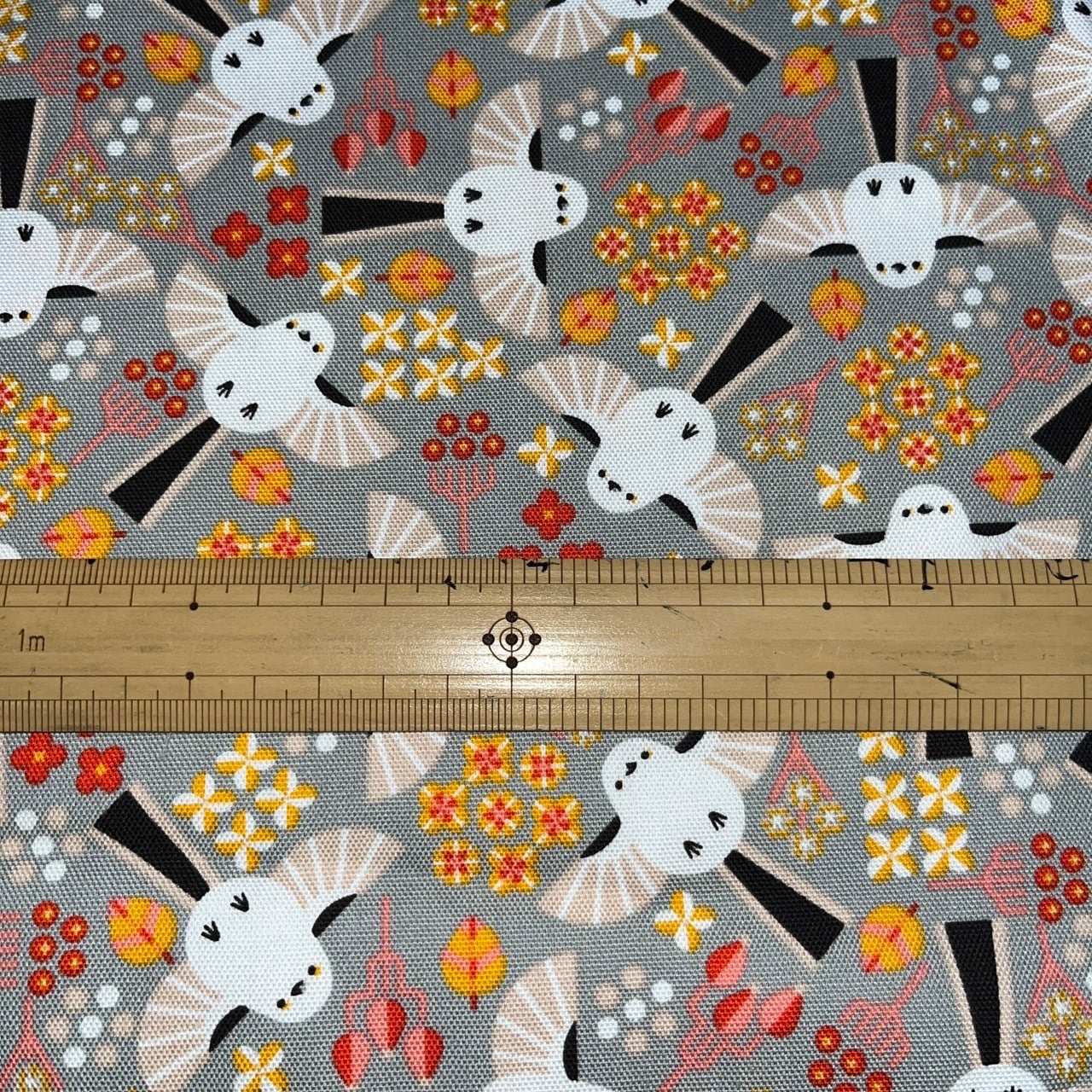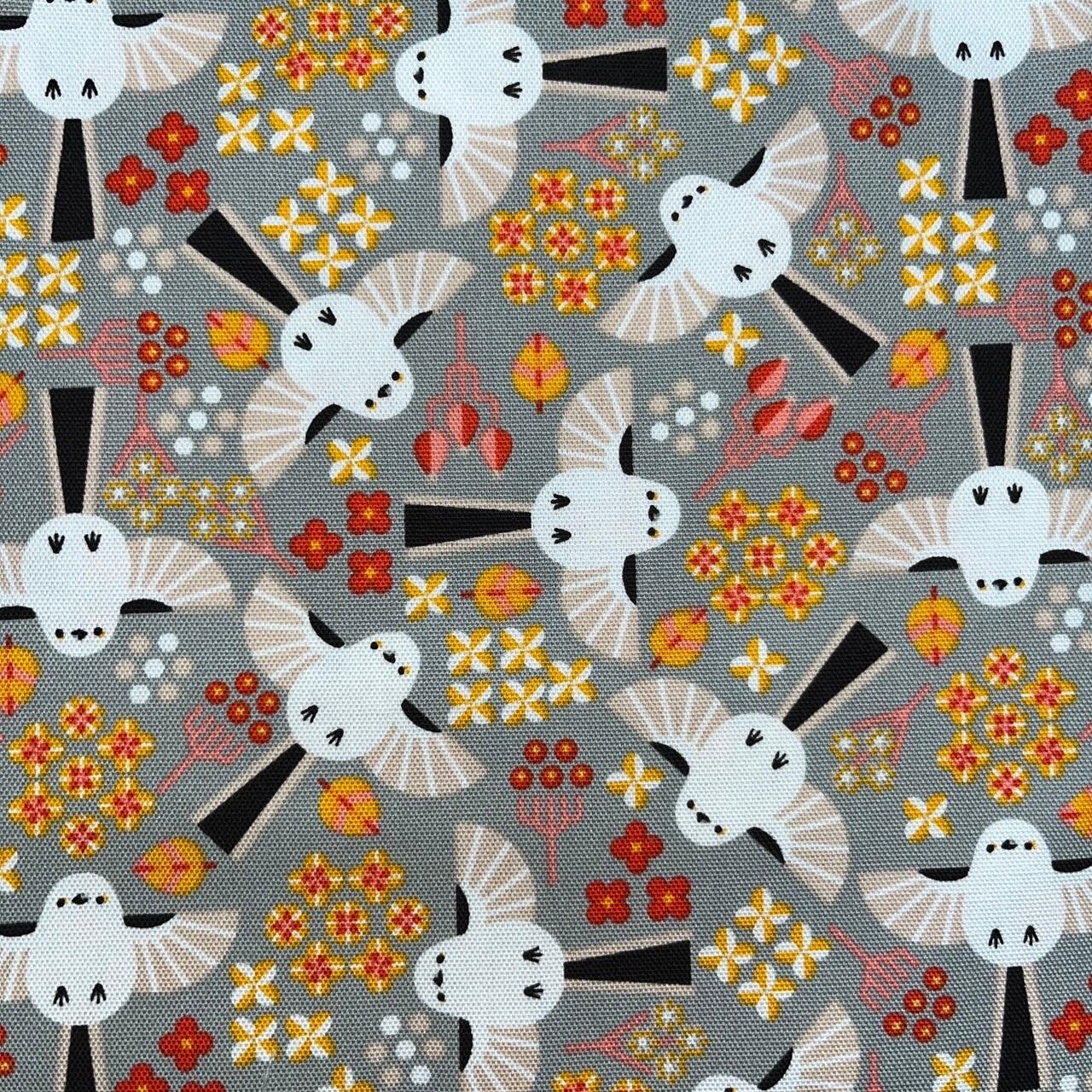 KOTORITACHI 舞うシマエナガ 【グレー】 オックス生地 1Mカットクロス