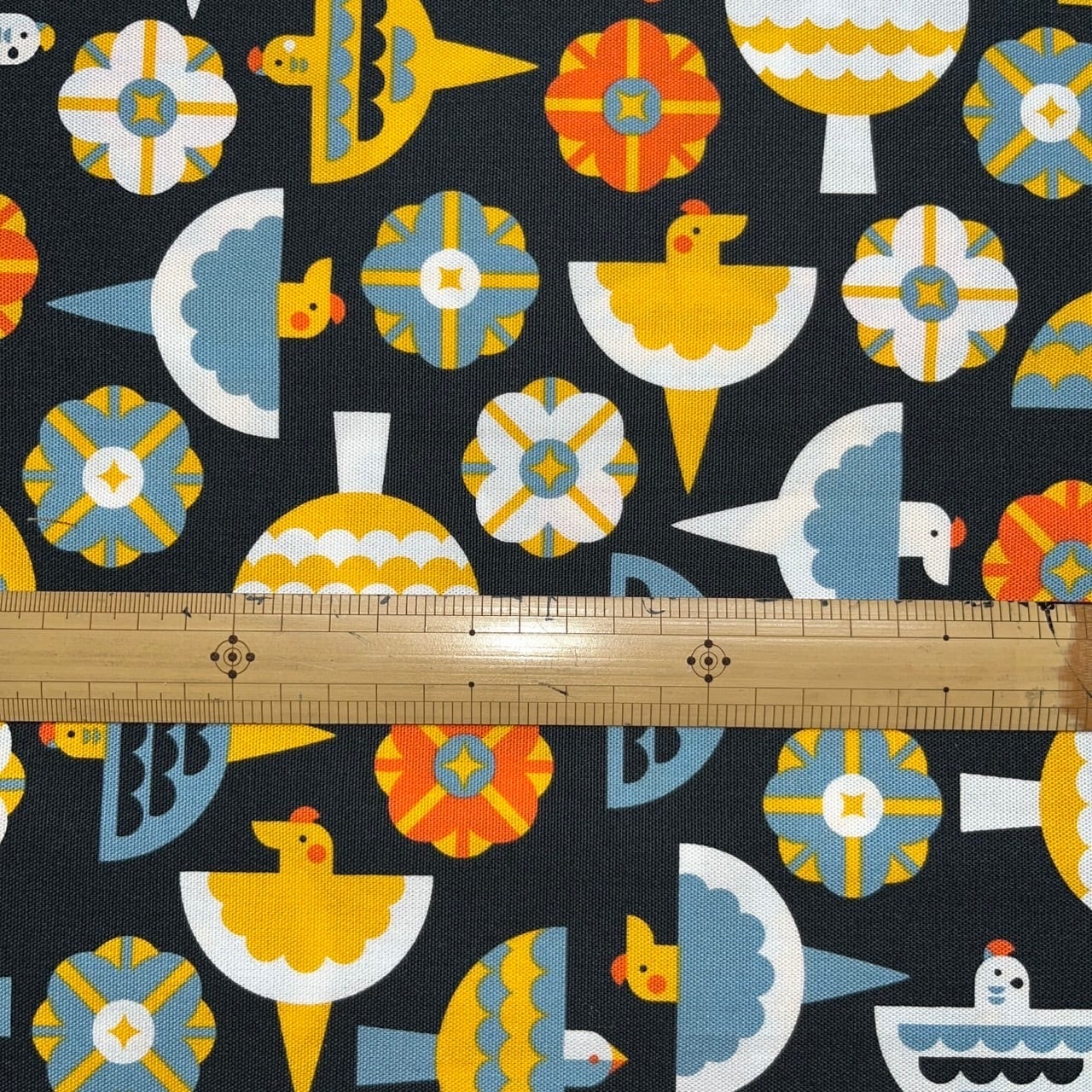 【商品名】『花を囲むコトリタチ』 オックスフォード生地 100㎝カットクロス