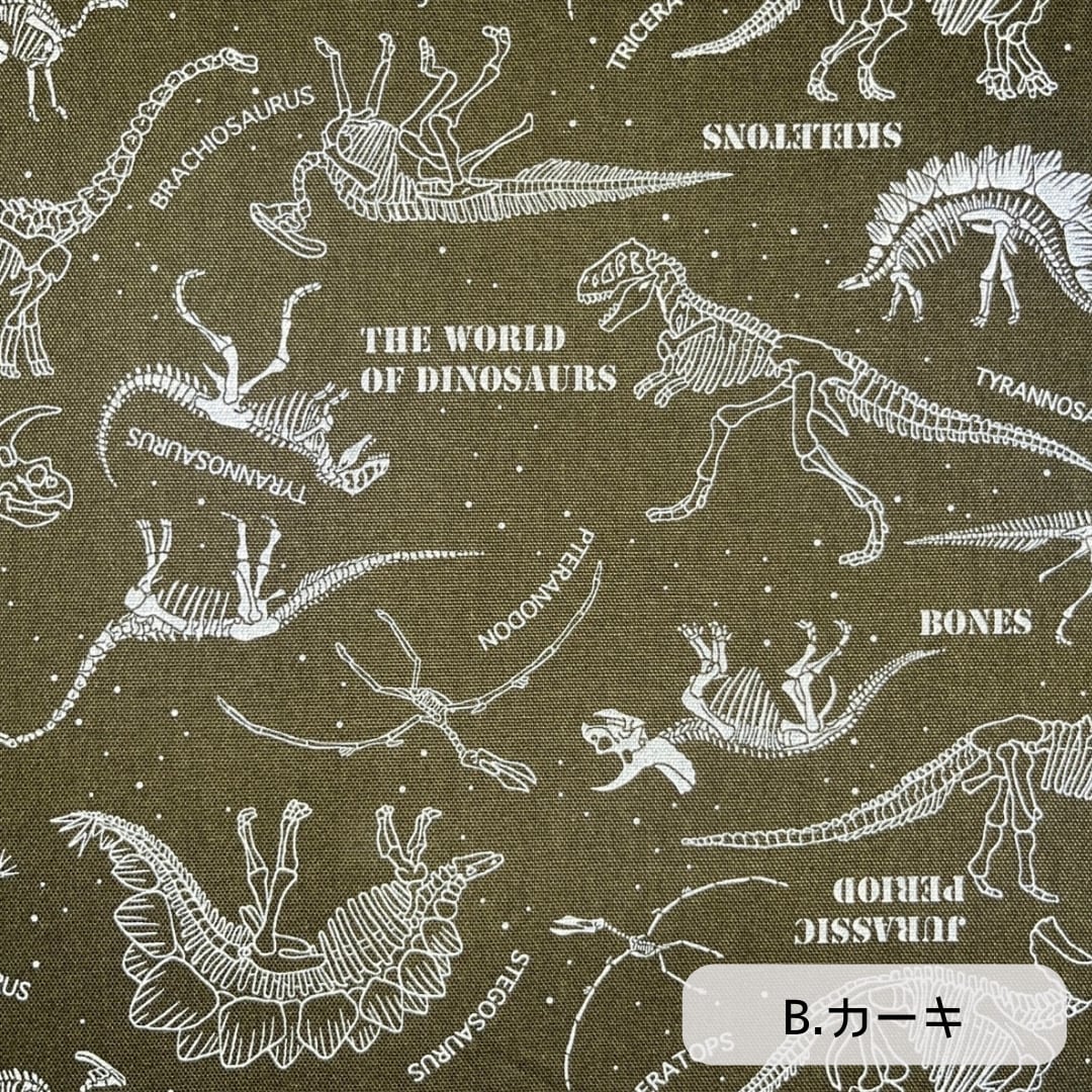 【商品名】『恐竜 標本柄』 50㎝カットクロス オックスフォード生地