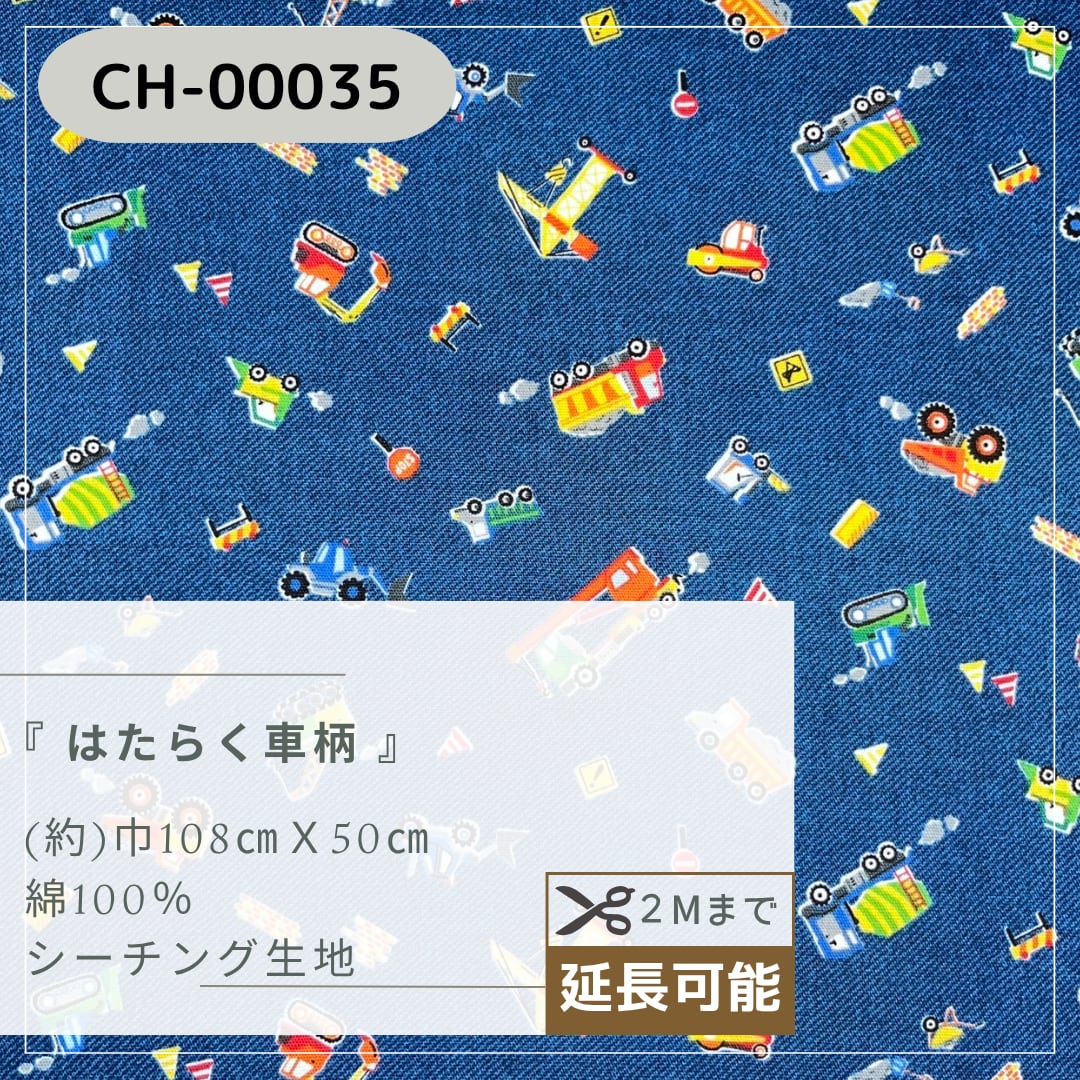 【商品名】『はたらく車柄』 シーチング生地 50㎝カットクロス
