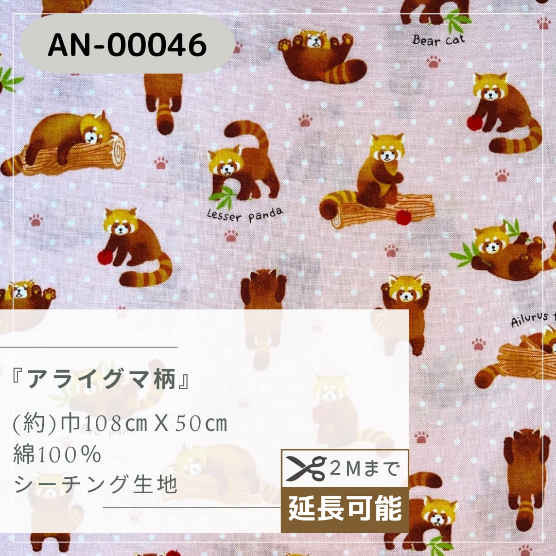 アライグマ柄 シーチング生地 50㎝カットクロス AN-00046