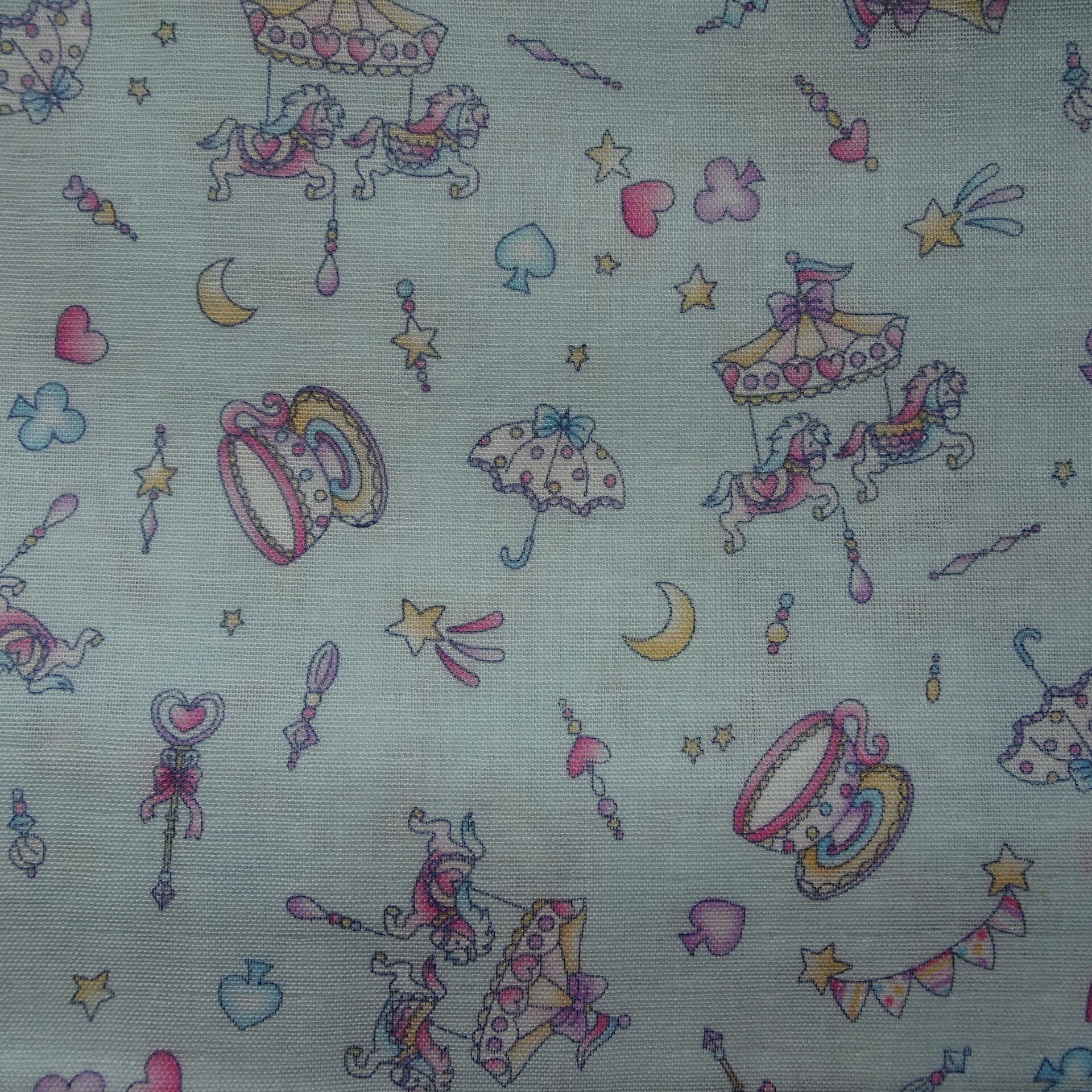 【商品名】ゆめかわプリント『メリーゴーランド』 Wガーゼ生地 1mカットクロス